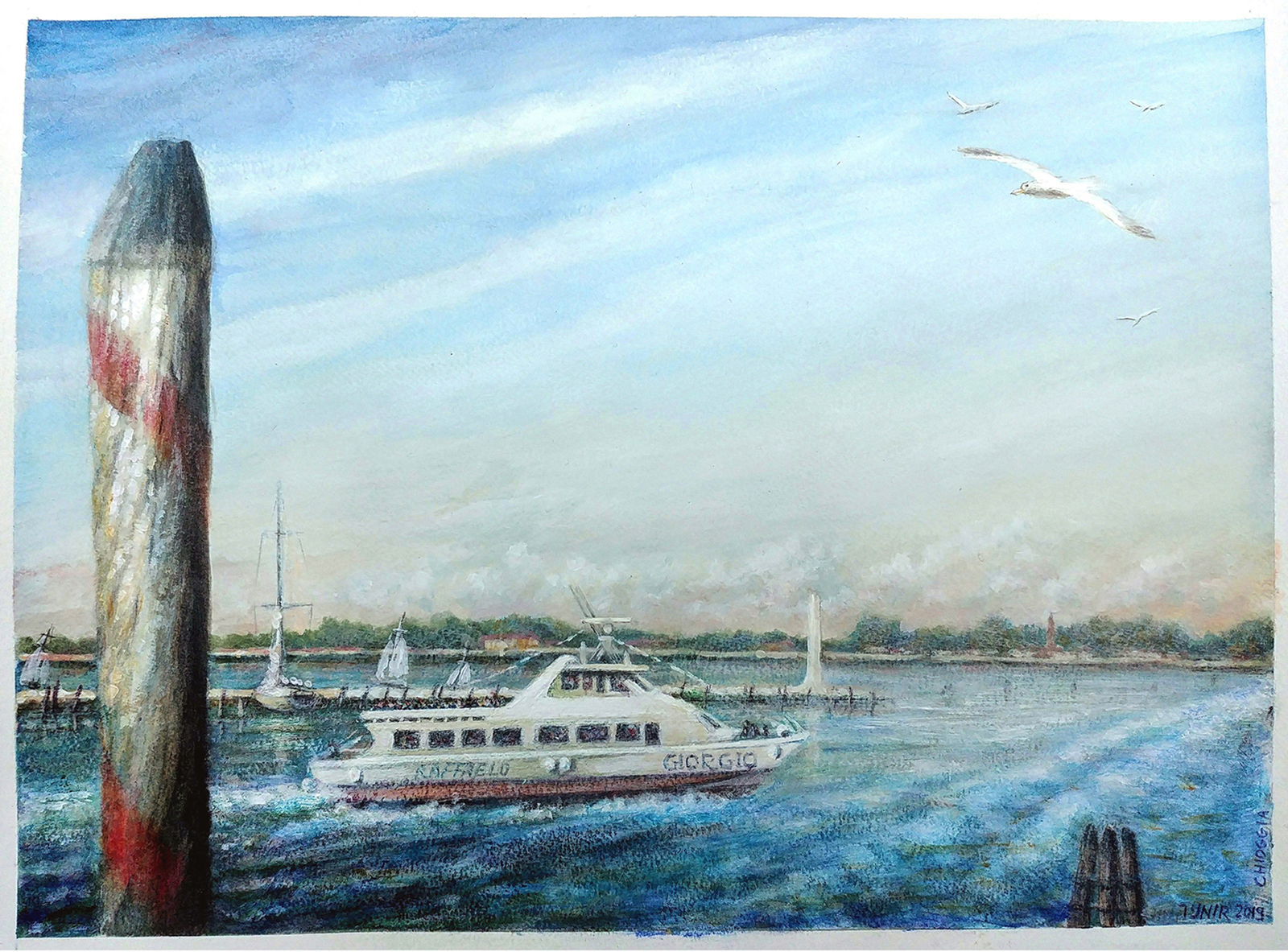 Chioggia, Italy, 2019. Aqua-rel & Acrylic on paper. 46 x 35 cm.